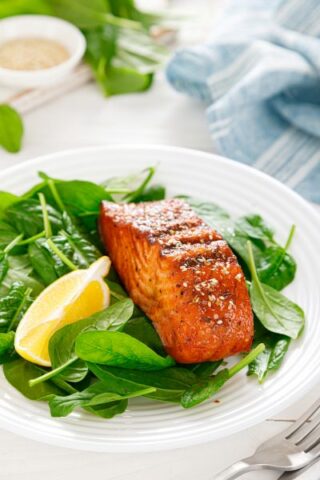Baked Salmon with Garlic Spinach and Spaghetti Squash