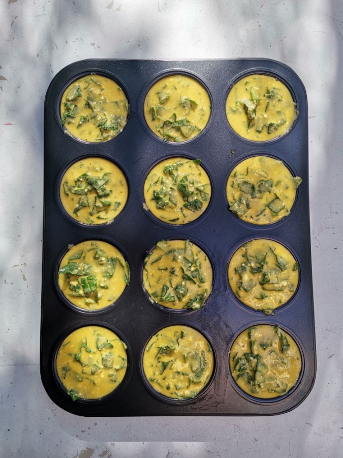 - Preheat oven to 350°F (175°C). Lightly grease a muffin tin with olive oil.